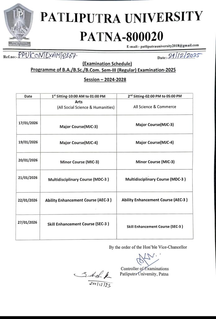 B.A.B.Sc.B.Com. Semester–III (Regular) Examination Schedule – 2025By Mahabodhi Mahavidyalaya / December 27, 2025